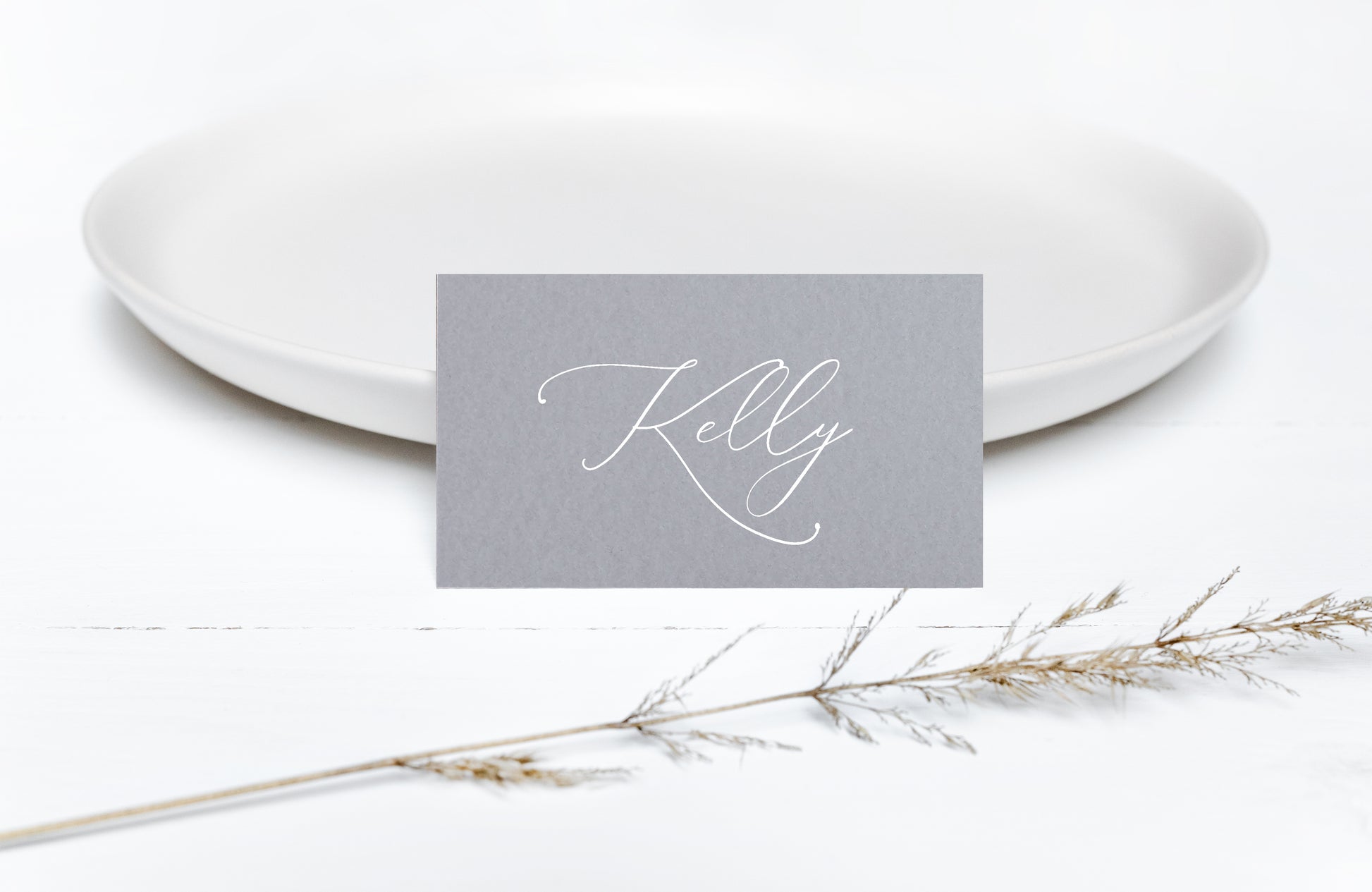 Grey Classic Calligraphy Place Cards - Tent Fold Style